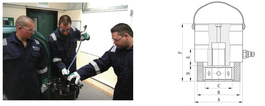 • 彈簧自動復(fù)位,活塞過行程保護,當(dāng)活塞達到最大行程時,將可見一根紅色警示線,拉伸器內(nèi)部的一個簡單的機械失效裝置將避免液壓油濺傷作業(yè)人員;