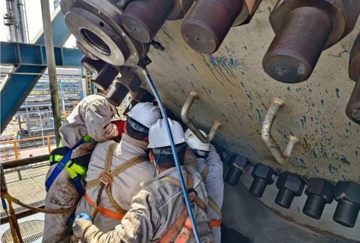 首先在拉伸預(yù)緊前應(yīng)該檢查螺栓和螺母表面是否有銹蝕或者顆粒雜質(zhì)粘附,清除雜物、清洗螺栓銹蝕并潤(rùn)滑。檢查葉輪和軸承孔的匹配性。接下來安裝螺栓拉伸器。將螺栓拉伸器放置在螺栓上并旋轉(zhuǎn)到正確的位置,確保每個(gè)螺栓拉伸器都正確安裝。確保安裝好之后就可以根據(jù)所需拉力調(diào)節(jié)超高壓泵站壓力,升壓拉伸螺栓了。