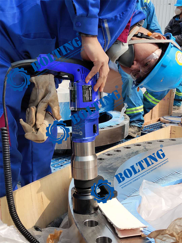 在技術(shù)人員的專業(yè)培訓(xùn)和解答之下,現(xiàn)場(chǎng)使用人員逐一了解數(shù)顯電動(dòng)定扭矩扳手的了解和使使用,相比之前使用的液壓扭矩扳手使用更加輕便,單人即可操作,無需更多人員陪同作業(yè),減少了大量的時(shí)間和人力。